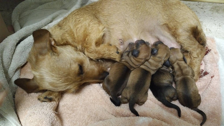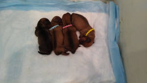 Four Puppies: 3 girls (2 reds, 1 wild boar) and 1 boys (2 red)