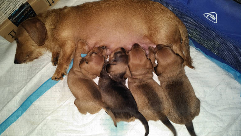 CH Weiner Works' Rosie's Little Rascal "Dorothy", Weiner Work's Rosie's Roadhouse "Garth" 4/6/2017 Litter