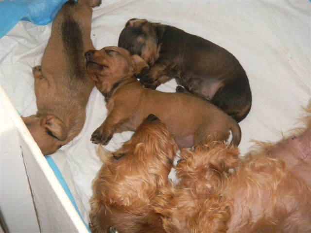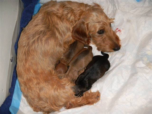 GCH & FCI-IB Weiner Works' Cactus Kate, MW and UK CH Kanix Hugo to Stargang May 11, 2013 Litter