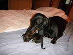 GCH Weiner Works’ Incredible Miss Fancy Pants, MS “Fanny" and MBISS GCHP Tudorglen V Brendackel Schwartzwalder Kischtore MS “Forest”