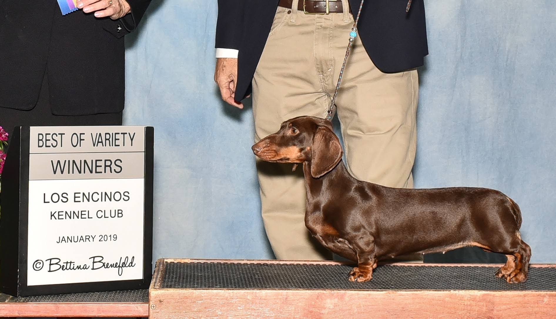 GCH Weiner Works’ Incredible Miss Fancy Pants, MS “Fanny" and MBISS GCHP Tudorglen V Brendackel Schwartzwalder Kischtore MS “Forest”