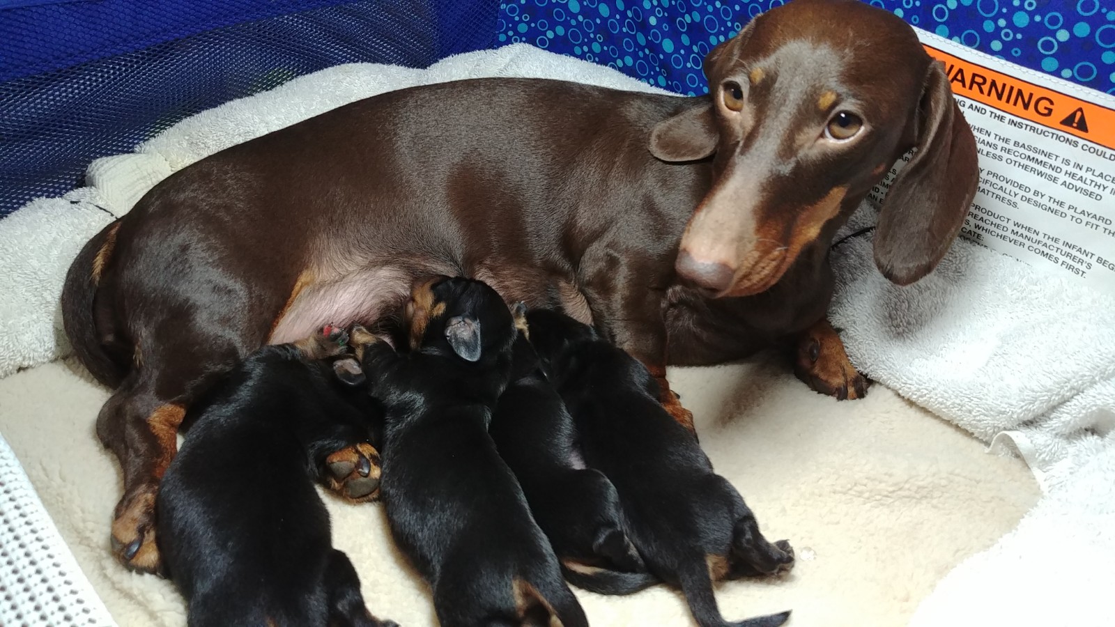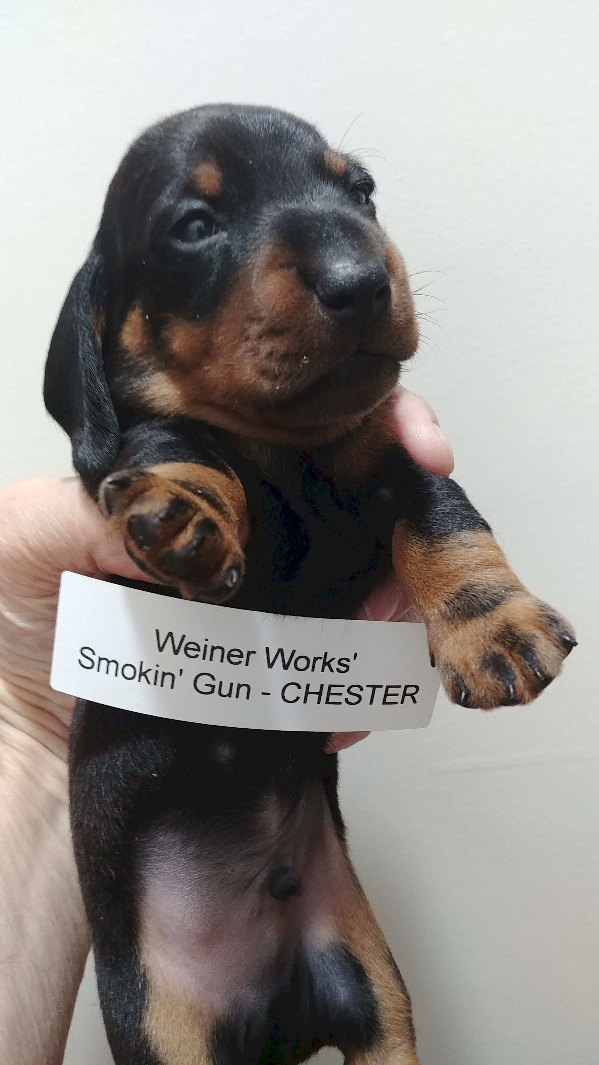 GCH Weiner Works' My Wild Cactus Rose MW "Rosie", GCH Alegna's Heir Force One MW "Wills" 4/2/2016 Litter