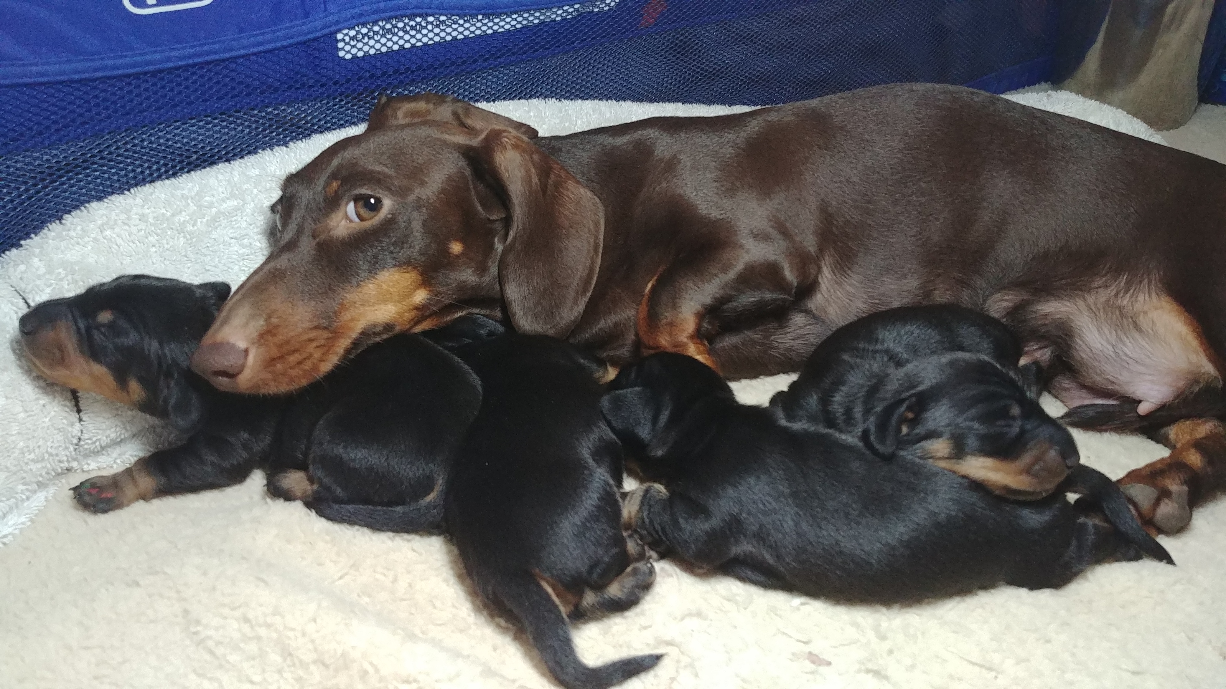 GCH & FCI-IB Weiner Works' Cactus Kate, MW and UK CH Kanix Hugo to Stargang May 11, 2013 Litter