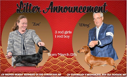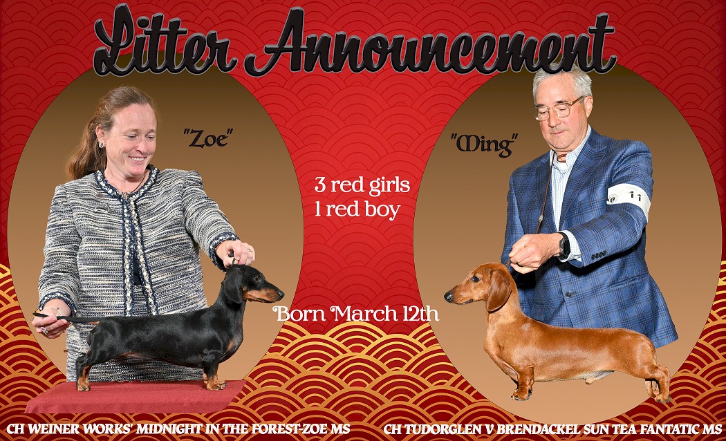 GCH Weiner Works' My Wild Cactus Rose, MW and CH Alegna's Ever so Clever MW September 25, 2014 Litter